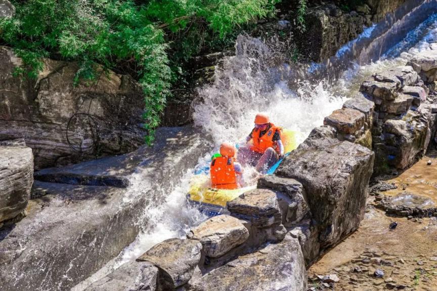 想体验在山水间极速穿梭的刺激吗?乐谷银滩的高山峡谷漂流绝对满足你!3.8公里超长河道,180米垂直落差,300+极速叠差,被誉为“华北最野漂流”。记得带上防水装备和换洗衣物哦!