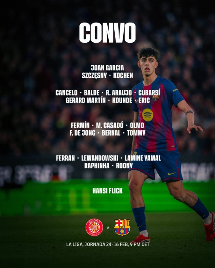 巴萨客战赫罗纳大名单: