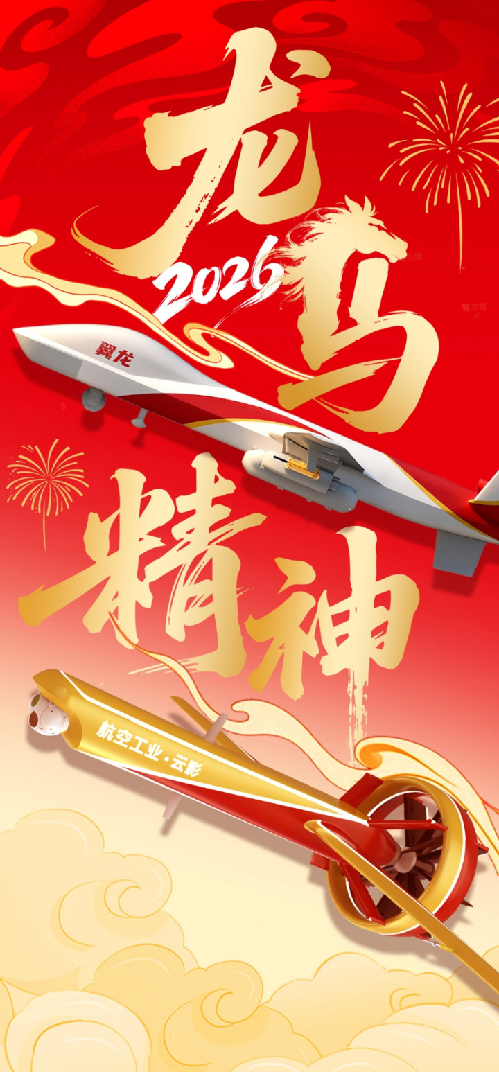 中国航空工业集团携“云影”“翼龙”,向全国人民拜年,祝愿祖国繁荣昌盛,祝福大家马年大吉、龙马精神,未来,无人机“国家队”将继续翱翔于服务祖国国计民生的广阔天地,用智慧科技守护山河锦绣,共创美好未来。
